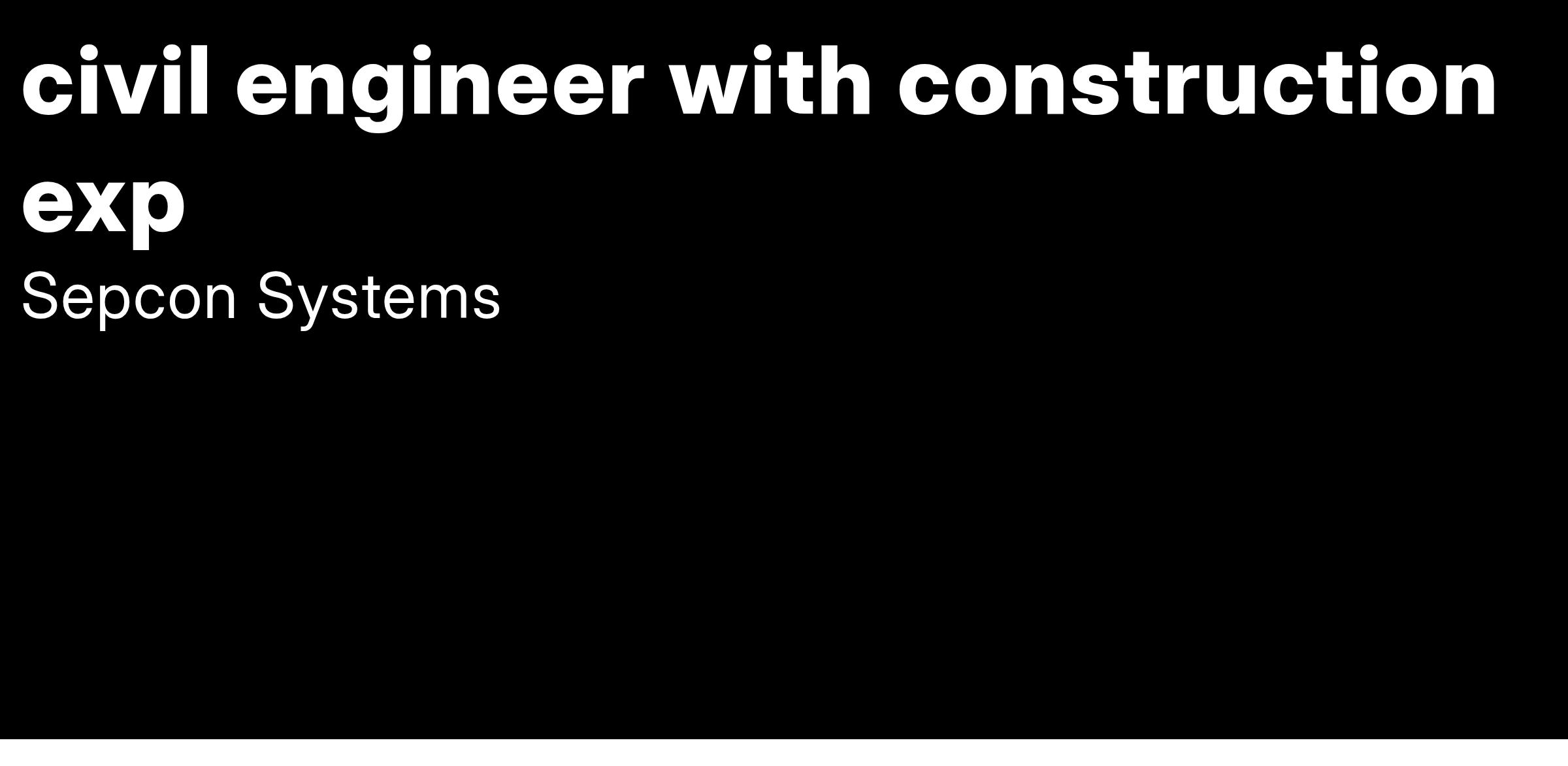 We are seeking a skilled Civil Engineer with Construction Experience to join our dynamic team at Sepcon Systems Pvt. Ltd. in Bangalore Urban. This is a full-time role that focuses on managing, designing, developing, creating and maintaining construction projects. The ideal candidate will have a strong background in construction engineering and be well-versed in various industry skills.