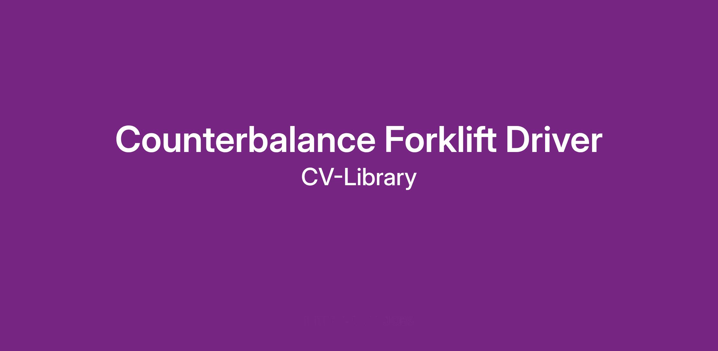 As a competent and experienced counter bamalnce driver, you will have all relevant experience