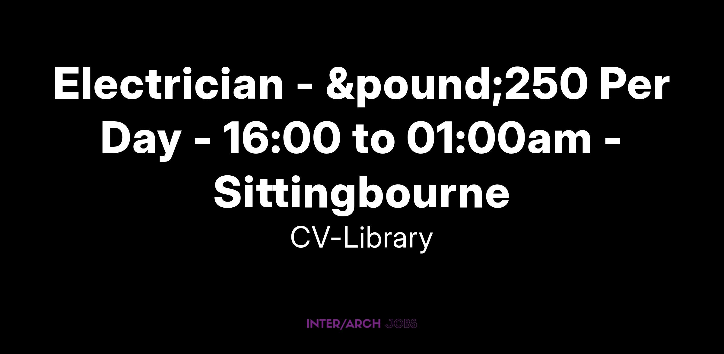 Electrician - £250 Per Day - 16:00 to 01:00am - Sittingbourne