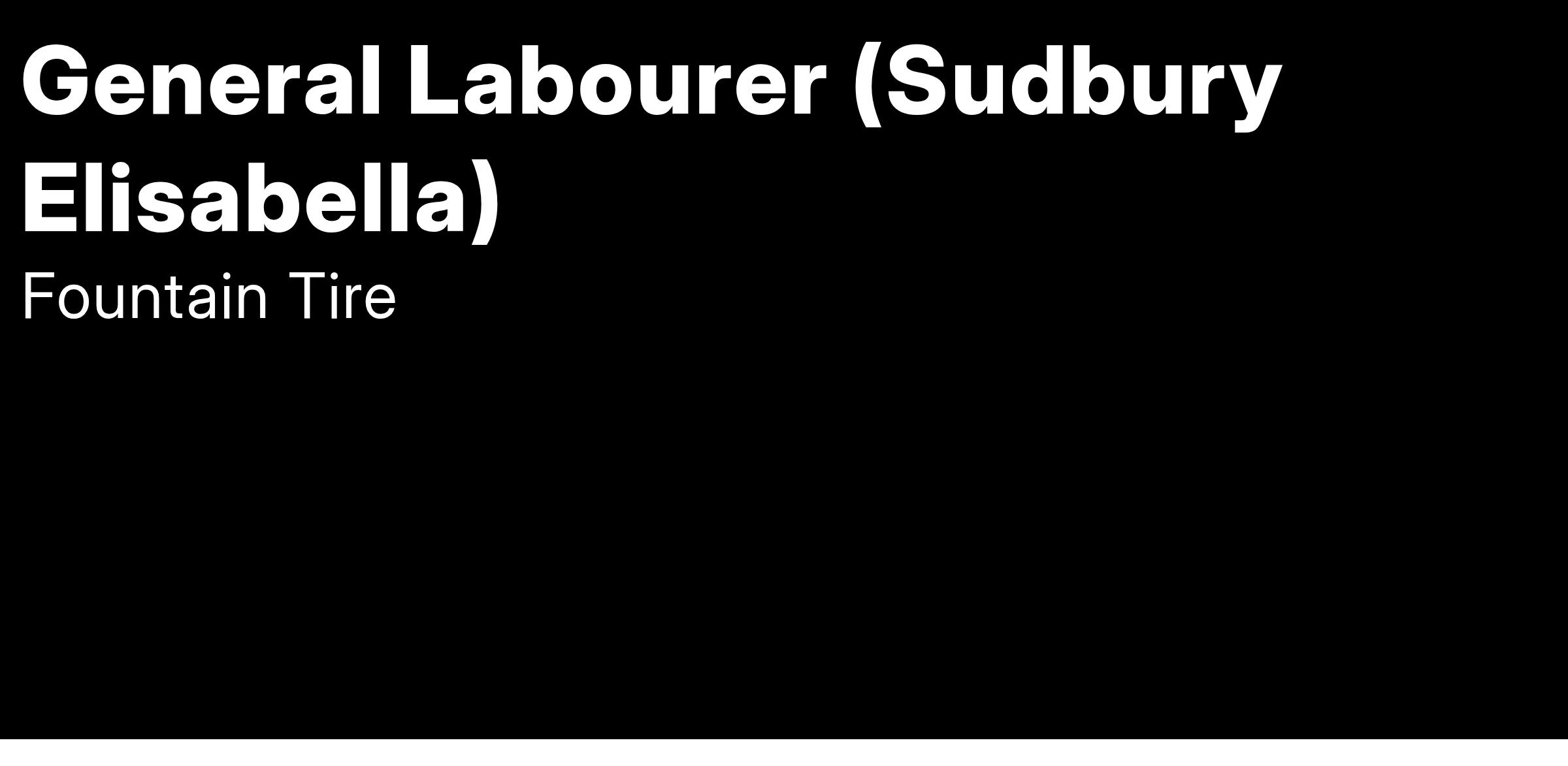 Fountain Tire Sudbury (Commercial) is looking for a skilled and General Labourer to join our team!