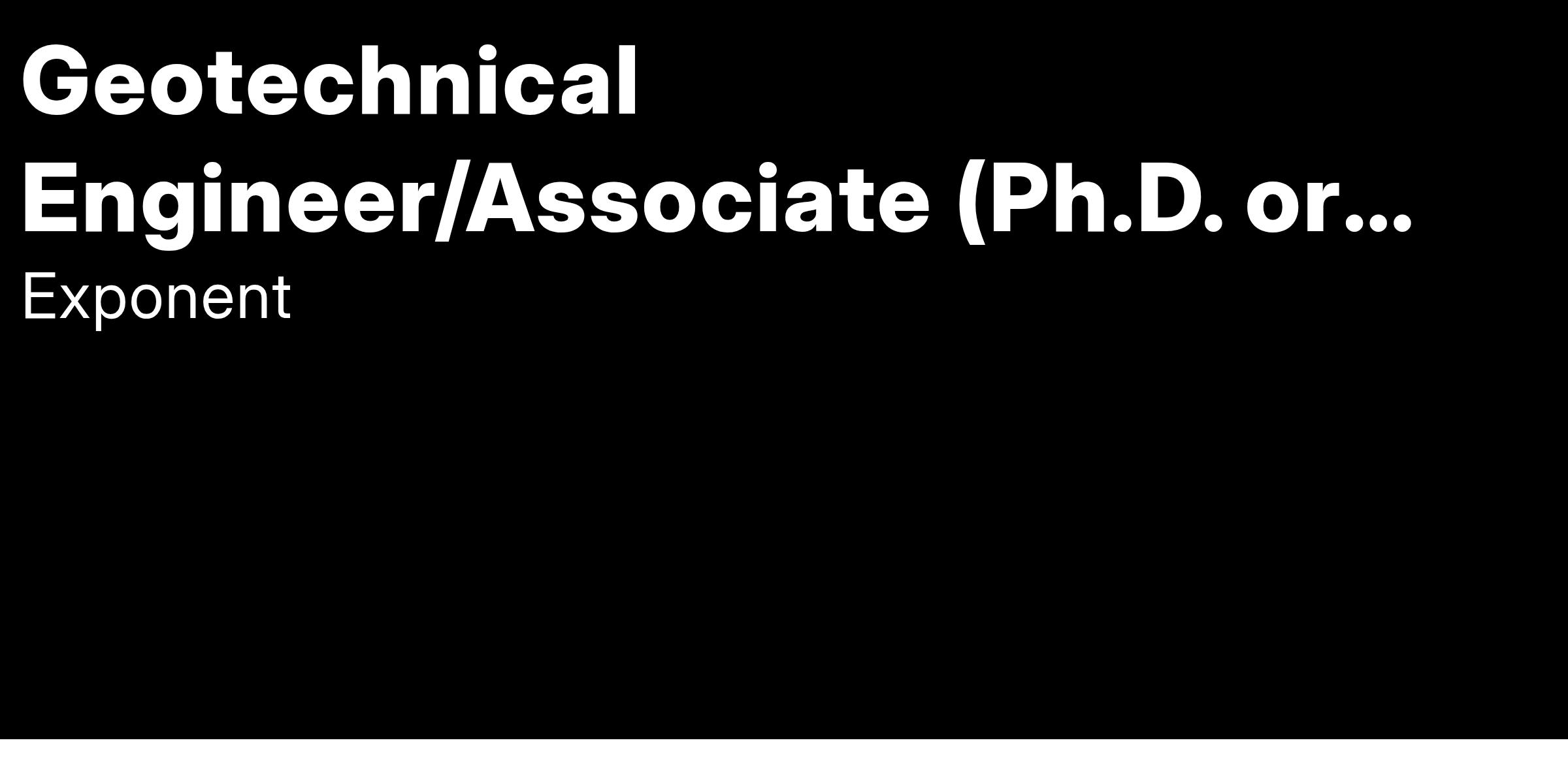 We are currently seeking a Geotechnical Engineer/Associate for our Civil & Structural Engineering Practice in Bellevue, WA. In this role you will work as part of a team responsible for the inspection, analysis, and evaluation of geotechnical systems (e.g., foundations, retaining walls, excavation support systems, levees, dams, slopes, etc.) and frequently the preparation of repair/mitigation concepts.
