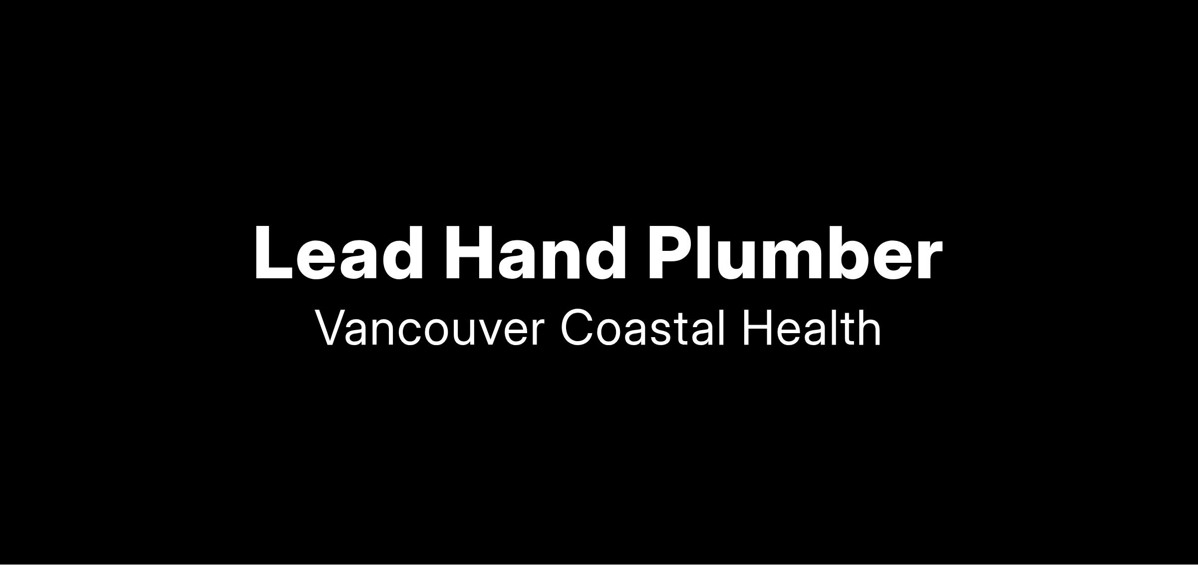 Come work as a Lead Hand Plumber with Vancouver Coastal Health (VCH)!