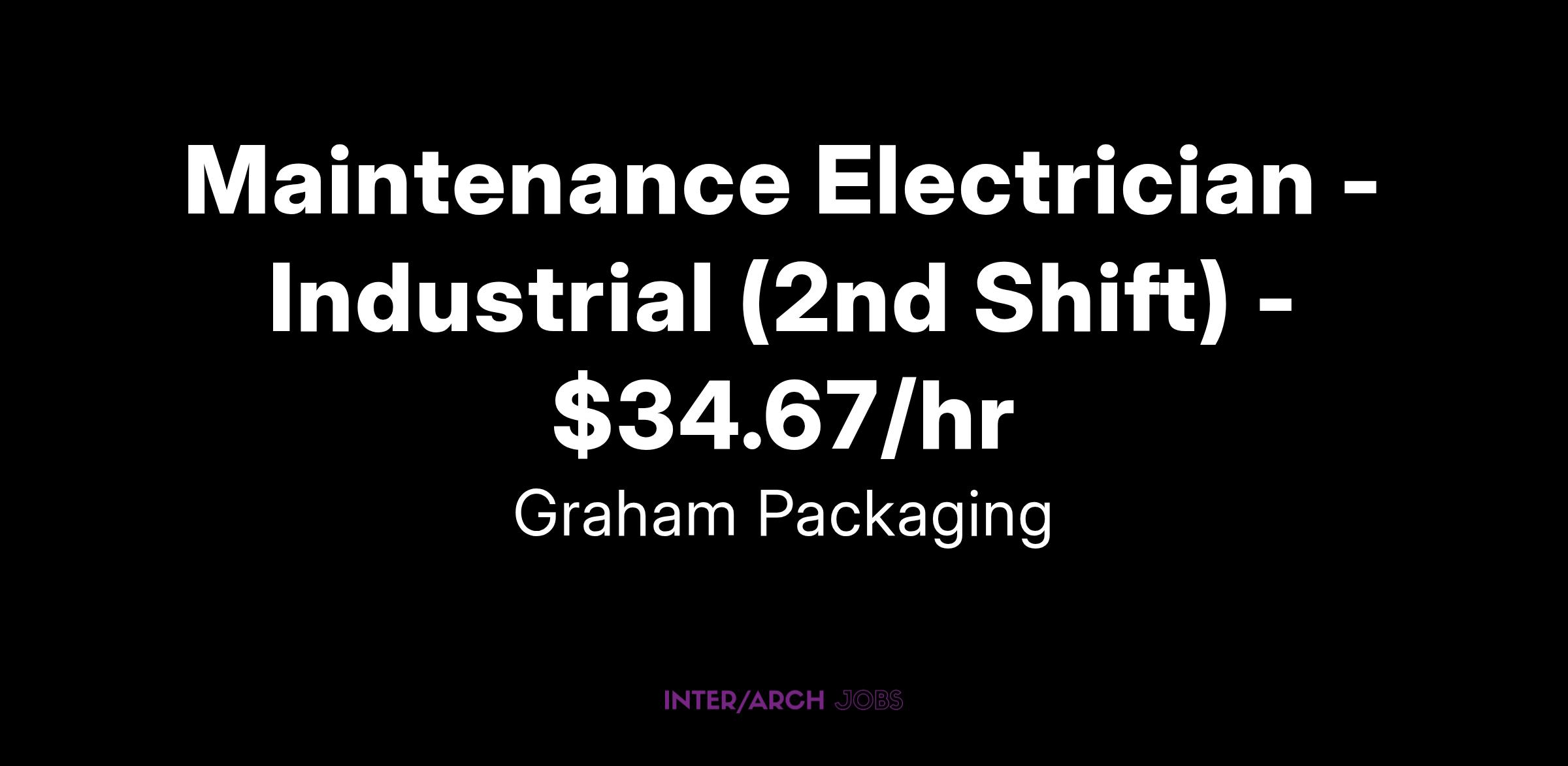 Graham Packaging Company is looking for a(n) Maintenance Electrician based in Bradenton. This opening is forΒ NIGHT 2ND SHIFT 2:48pm-11:00pm.