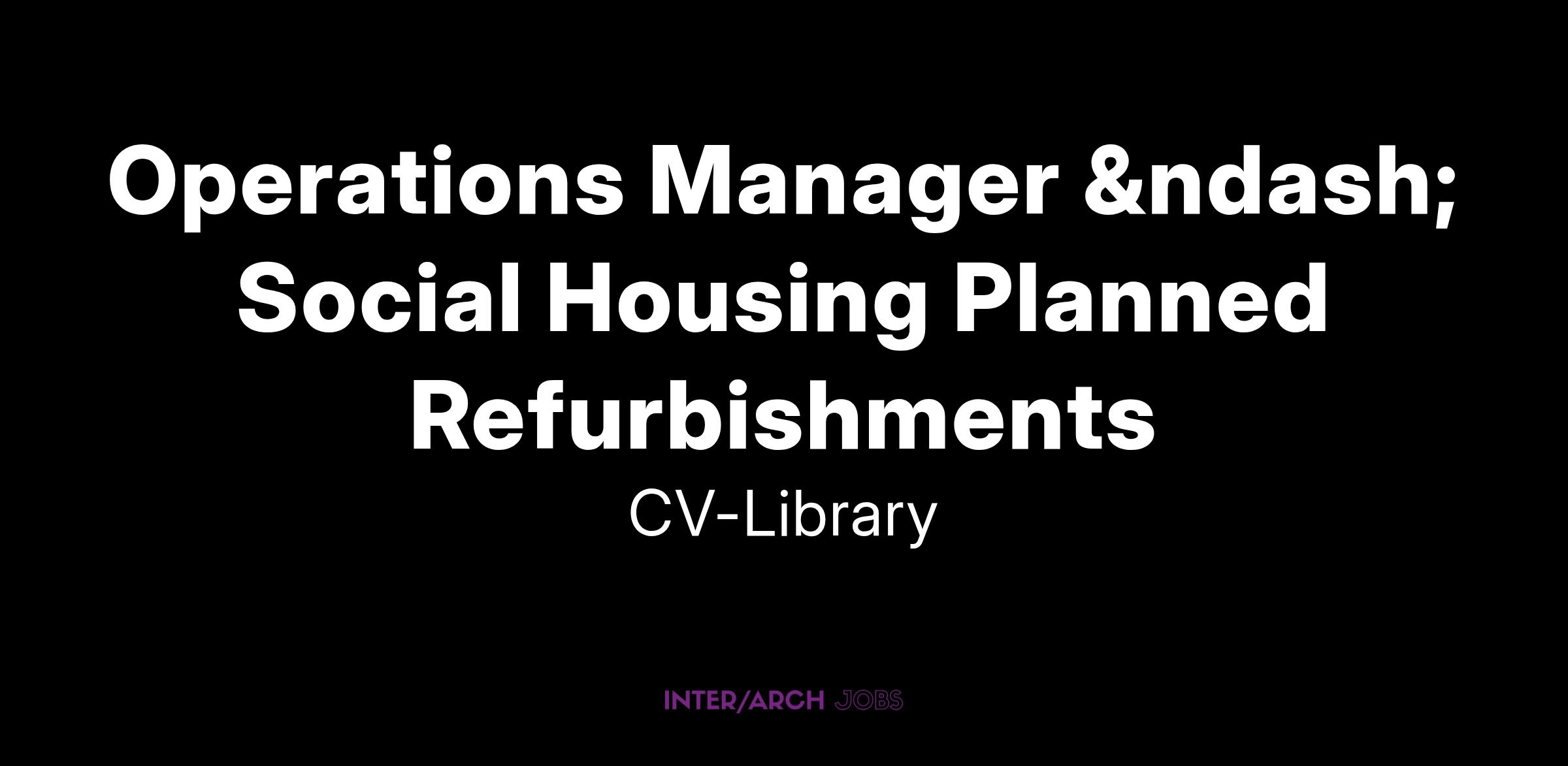 Position: Operations Manager – Social Housing Planned Refurbishments