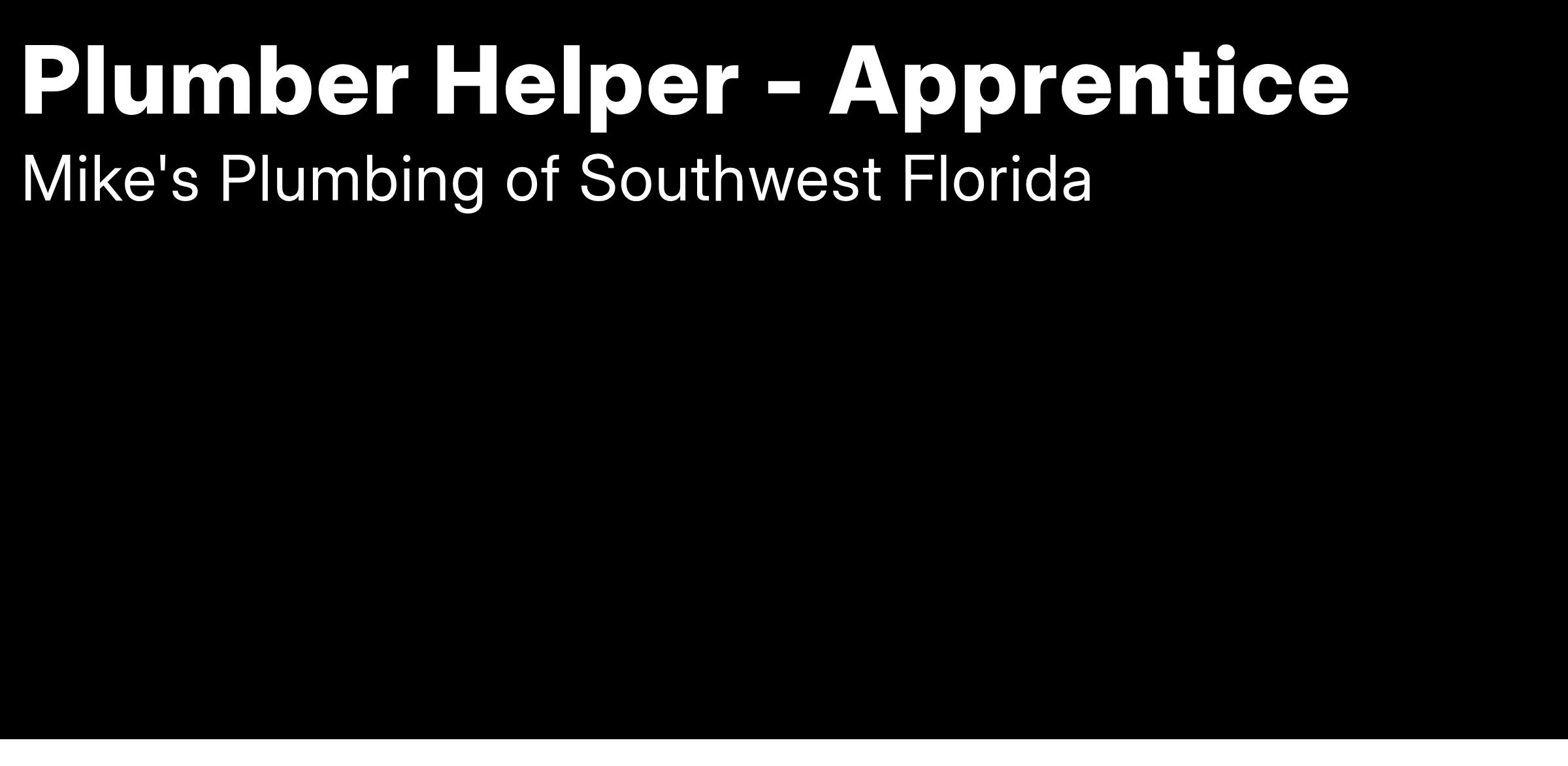 Mike's Plumbing of Southwest Florida Inc. is currently hiring for a full-time Plumber Helper - Apprentice to learn the trade by helping our technicians with various jobs in the Naples, FL area. This position earns a competitive wage of $20/hour or more, based on experience. We are also offering a sign-on bonus!