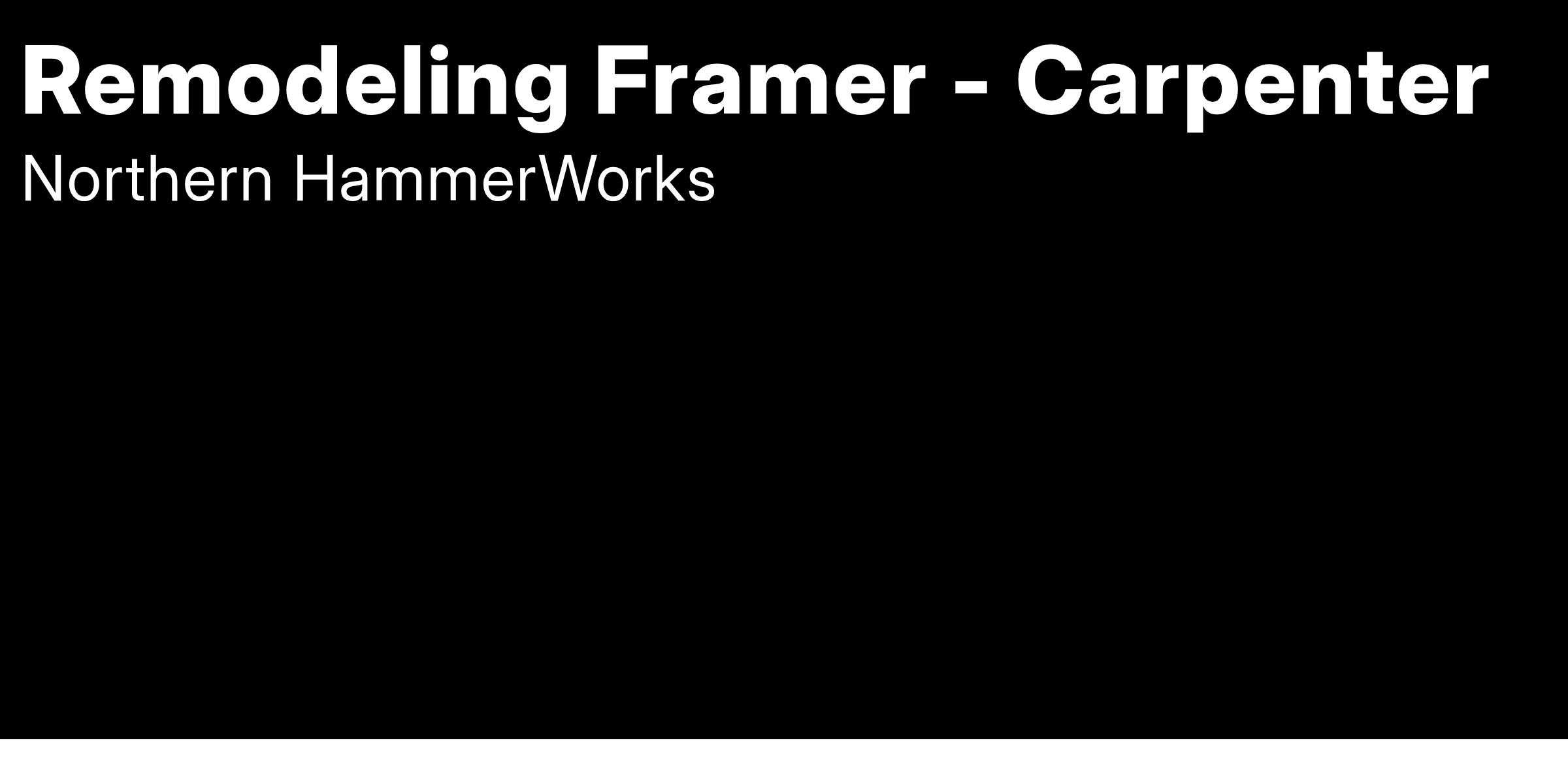 Northern HammerWorks in Avon Lake, OH is calling all Remodeling Framer / Carpenters to apply to join our amazing team full-time! The typical schedule for this carpentry position is Monday through Friday from 7:30 AM – 4 PM.
