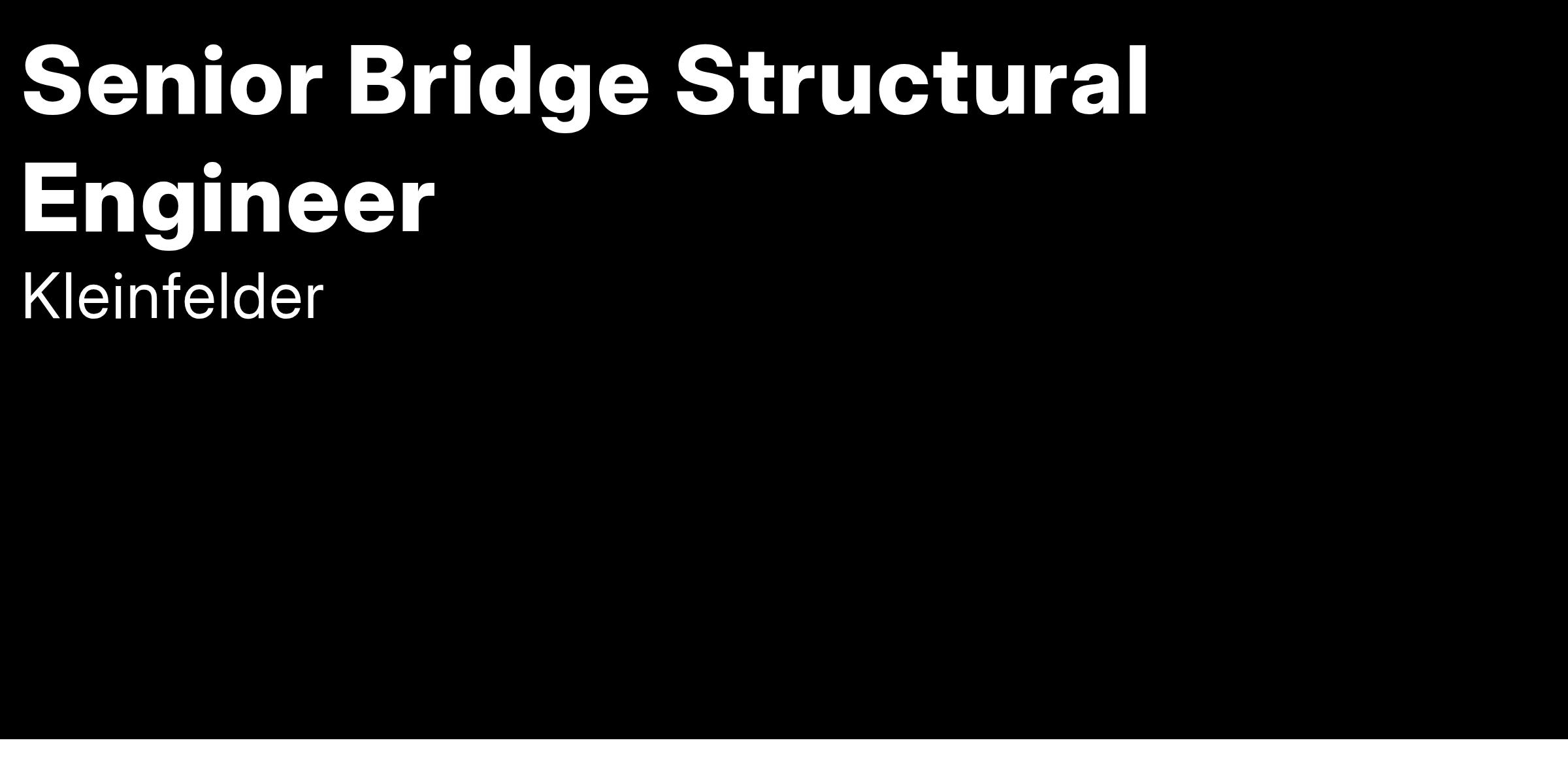 Kleinfelder is seeking a talented Senior Bridge Structural Engineer to work on challenging and exciting transportation projects in the New England Region.