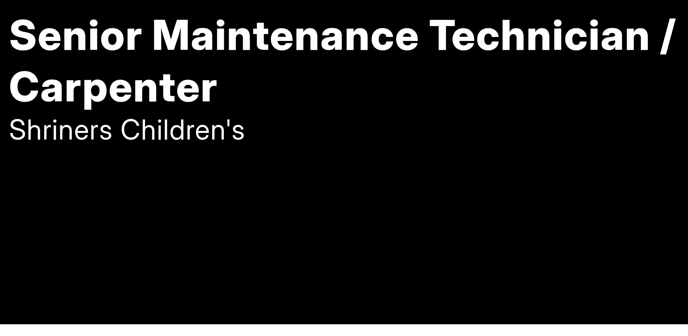 The Senior Maintenance Technician is a journeyman level position responsible for performing a variety of basic and comples tasks including carpentry, preventative maintenance, repair, and operation of buildings, equipment, utility systems and grounds and also a multitude of hospital systems. The full scope of duties insure a safe, reliable, and efficient environment for our staff, patients and visitors. This position offers the opportunity to cross over and grow your skillset within the team.