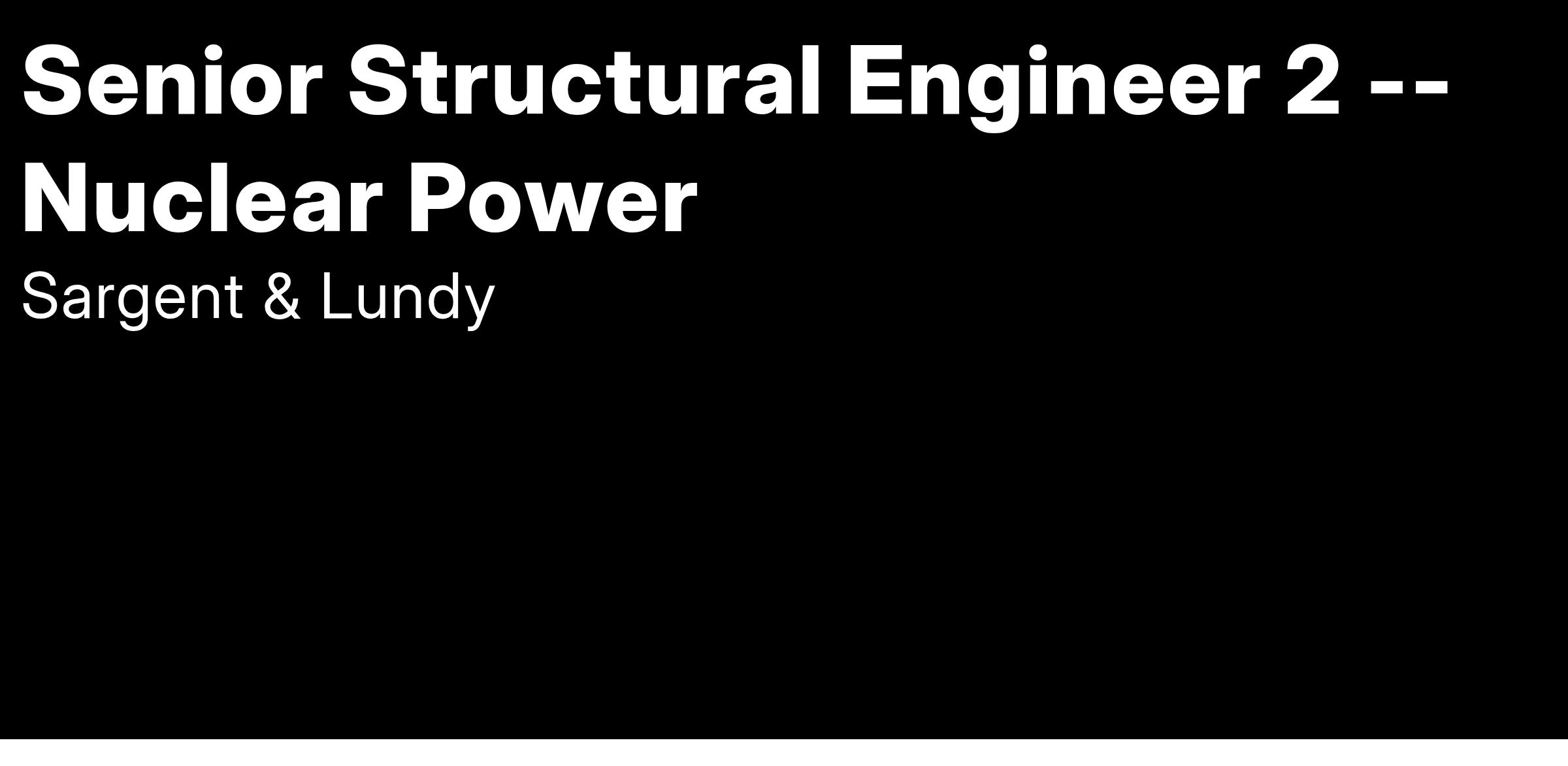 Join Sargent & Lundy's Nuclear Power Group and be part of a team driving the future of clean, carbon-free energy. Since 1954, we’ve been a trusted leader in nuclear engineering, design, and licensing, with expertise spanning small modular reactors (SMRs), advanced reactor technology (ART), and first-of-a-kind commercial reactor restart projects. Our work supports life extensions and digital modernization of existing nuclear plants, coal-to-nuclear conversion initiatives with the Department of State, and international nuclear new-build projects. With a commitment to safety, innovation, and sustainability, we provide cutting-edge solutions that power communities worldwide while reducing emissions. Shape the future of global energy with us!