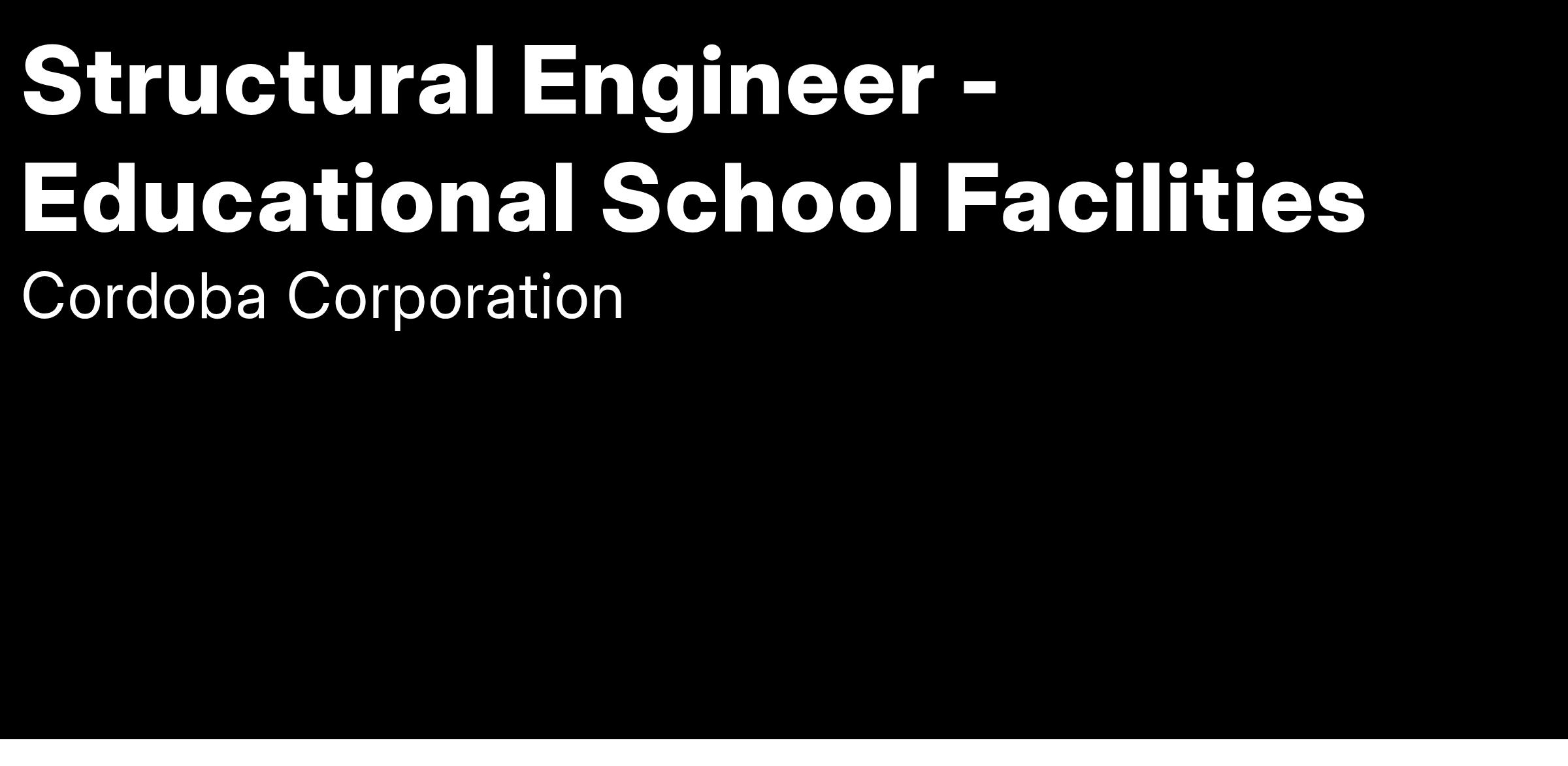 Cordoba is looking for a Professionally Licensed in California Structural Engineer to assist one of its K-12 client in the Los Angeles area. The Structural Engineer will make recommendations and provide technical direction to commissioned architects or other structural engineers working on the program. Additionally, the Structural Engineer will assist in the development of structural engineering policies throughout the Structural Engineering Unit. Investigation of structural related matters on existing facilities will be part of the Structural Engineer’s duties, and the Structural Engineer may order destructive or non-destructive testing to assess the condition of structural components, including review of geotechnical report information when dealing with foundation structural issues.